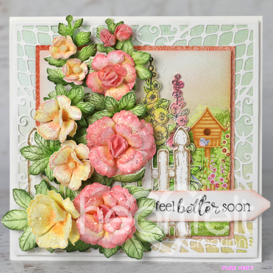ハートフェルトHollyhock Gardenコレクションです。クリングスタンプ&ダイのセットです。