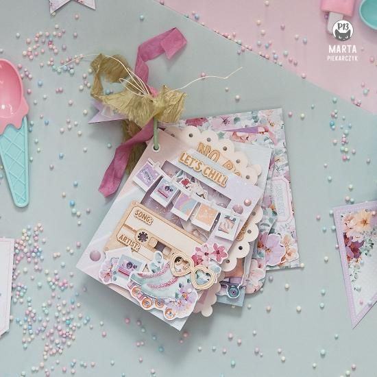 12 "X12"両面カードストックの12枚(6デザインx各2枚)と、内側カバーの2枚のボーナスシートがあり、ファシーカット用のエレメントが付いています。